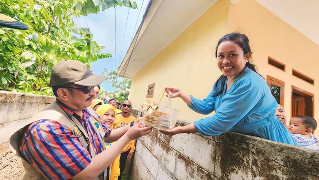 Momen mengejutkan terjadi saat calon Bupati Sukabumi nomor urut 2 Asep Japar menerima undangan dari warga di Kampung Cihurang, Desa Cidadap, Kecamatan Simpenan Kabupaten Sukabumi, seorang emak-emak tiba-tiba muncul dari balik tembok gang menyodorkan paket kue.