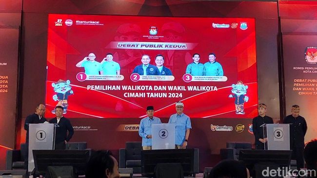 Tiga kontestan Pemilihan Wali Kota Cimahi dan Wakil Wali Kota Cimahi tahun 2024, menjalani debat publik pamungkas di salah satu hotel di Lembang, Kabupaten Bandung Barat (KBB).