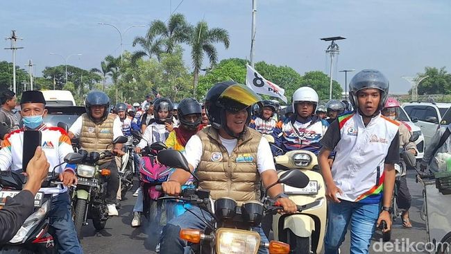 Calon Bupati Karawang nomor urut 2, Aep Syaepuloh, menarik perhatian saat tiba di lokasi kampanye akbar menggunakan sepeda motor RX King, Sabtu (23/11/2024). Kendaraan yang lekat dengan jiwa muda ini ia pilih karena antusiasme masyarakat membuat akses jalan menuju lokasi kampanye, Lapangan Al-Azhar, Galuh Mas, mengalami kemacetan.