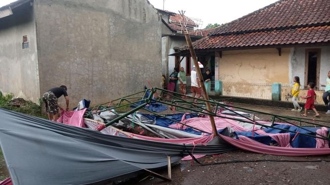 Sebanyak tiga lokasi Tempat Pemungutan Suara (TPS) di Kabupaten Bandung roboh tersapu angin puting beliung, Selasa (26/11/2024). Hal tersebut terjadi saat hujan dengan intensitas tinggi disertai dengan angin kencang.
