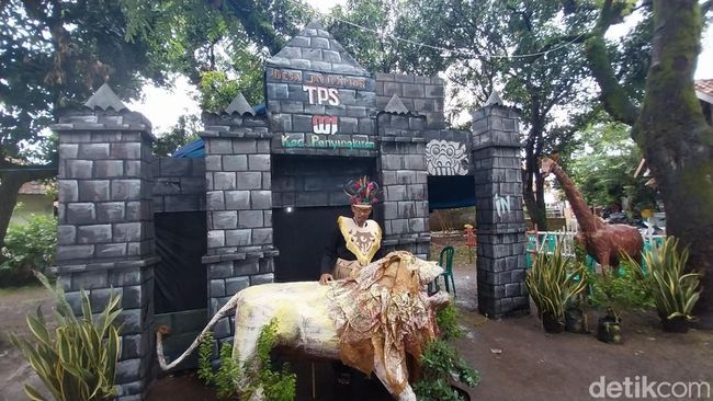 Tak hanya itu, mereka juga membuat rumah ala kerajaan untuk tempat pemungutan suara. Para petugas juga terpantau memakai pakaian seperti orang pedalaman.