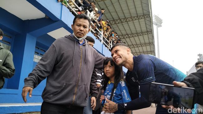 Ciro pun menanggapinya dengan hangat. Ia tak segan meladeni foto bersama dengan pendukung fanatik Persib Bandung itu.