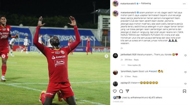 Makan Konate resmi hengkang dari klubnya, Persija Jakarta. Kabar kepergian Konate disampaikan sang pemain melalui unggahan di media sosial instagram pribadinya @makankonate10.