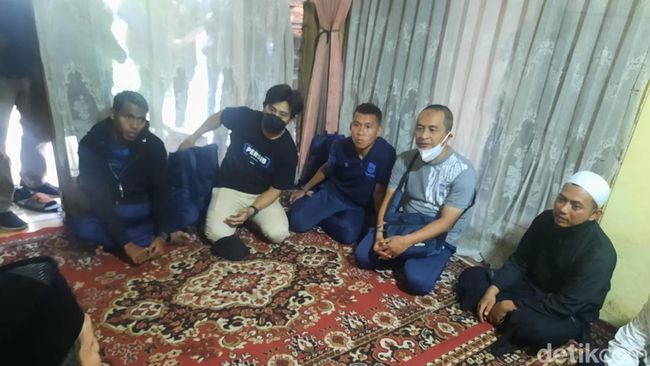 Pantauan detikJabar di lokasi rumah duka yang berada di Jalan Cibaduyut, Gang TVRI, Kecamatan Bojongloa Kidul, Kota Bandung Sabtu (18/6/2022) siang. Erwin Ramdani, Frets Butuan dan Yaya Sunarya jadi perwakilan tim Persib yang datang.