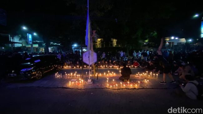 Mereka masih bertahan di depan Graha Persib. Mereka kemudian duduk melingkar di depan nyala lilin sembari menyanyikan chant-chant dukungan bagi Persib Bandung.