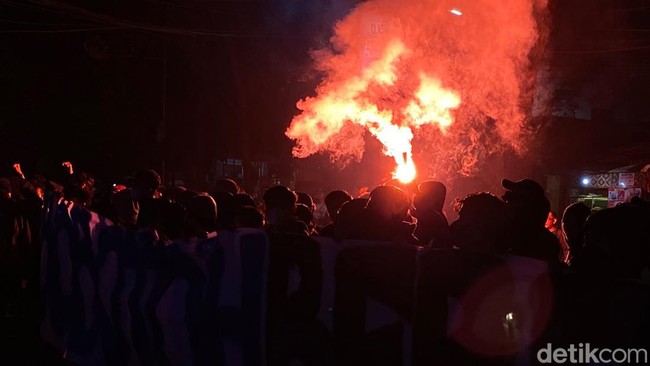 Diiring nyala flare, puluhan Bobotoh ini kemudian bubar dari Graha Persib. Di sepanjang jalan, mereka tak berhenti menyanyikan chant dukungan kepada Persib.