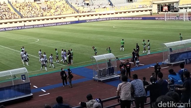Tidak hanya itu, para suporter juga melempari pemain ketika hendak meninggalkan lapangan di jeda babak pertama.