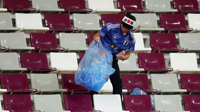 Suporter Jepang kembali jadi sorotan di Piala Dunia 2022. Apalagi kalau bukan karena aksi mereka yang doyan bersih-bersih stadion seusai laga.