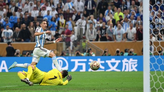Argentina berhasil menambah skor di menit 36. Berawal dari serangan balik cepat Di Maria mampu menceploskan bola ke gawang Lloris setelah mendapat umpan Mac Allister. Argentina 2 - Prancis 0.