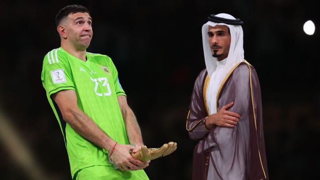 Kiper Argentina Emiliano Martinez didaulat sebagai penjaga gawang terbaik pada Piala Dunia Qatar 2022. Ia pun mendapat sarung tangan emas setelah aksinya mengawal gawang Tim Tango yang keluar menjadi juara Piala Dunia.