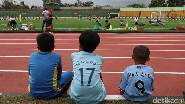 Sekelompok bocah juga banyak yang duduk di sisi area jogging track. Mereka terlihat sangat serius memperhatikan para pemain Persib berlatih. Menariknya, ada dua pemain Manchester City yang ikut menonton tim Maung Bandung.