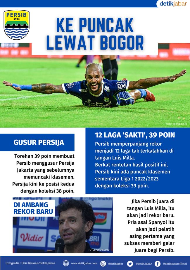 Bandung - Persib Bandung memuncaki klasemen sementara Liga 1 2022/2023 usai mengalahkan Borneo FC. Tampil di Stadion Pakansari, Bogor, Kamis (26/1/2023), Persib menang dengan skor tipis 1-0 berkat gol tunggal David da Silva.