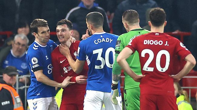 Derby Merseyside kali ini diwarnai tensi panas pada menit ke-85. Hal itu dipicu perselisihan bek Liverpool, Andrew Robertson, dengan kiper Everton, Jordan Pickford.