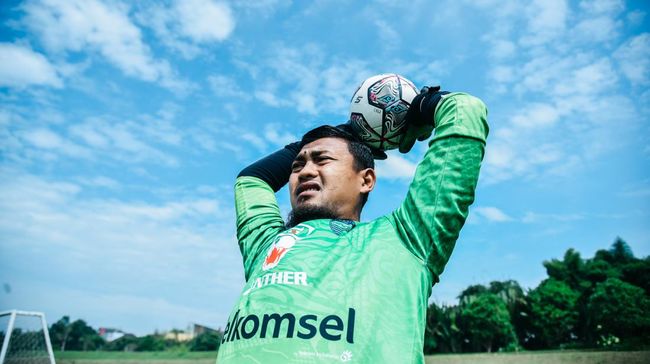 Penampilan kiper Dewa United M Natshir saat melawan Persib Bandung di Stadion Pakansari, Senin (20/3/2023), menjadi sorotan. Pemain yang akrab disapa Deden itu tampil gemilang.