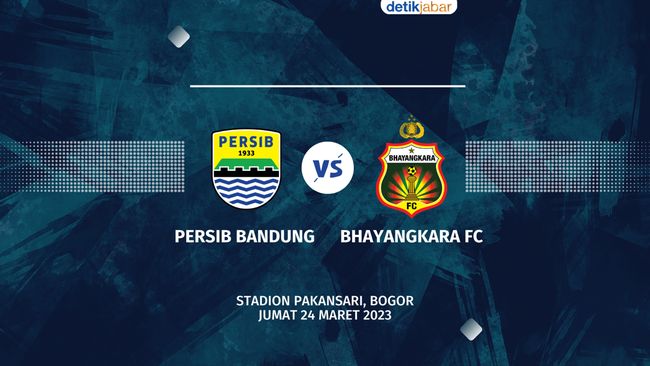 Persib Bandung melawan Bhayangkara FC dalam laga tunda pekan ke-18 yang dilangsungkan di Stadion Pakansari, Cibinong, Kabupaten Bogor, Jumat (25/3/2023). Kick off pukul 20.30 WIB.