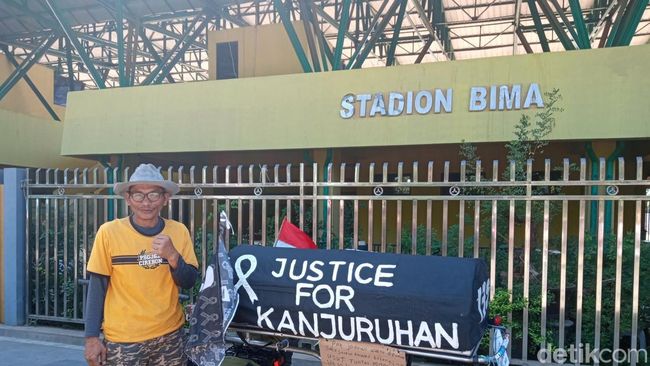 Miftahuddin rela menempuh jarak hingga ratusan kilometer demi membawa misi soal tragedi Kanjuruhan Malang yang merenggut ratusan nyawa. Pria 52 tahun itu melakukan perjalanan menggunakan sepeda kayuh dengan rute Malang - Jakarta.