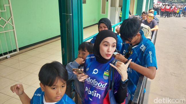 Pantauan detikJabar, ratusan penonton antre di pintu masuk Stadion Siliwangi untuk menukarkan tiket dan bergegas masuk ke dalam Stadion.