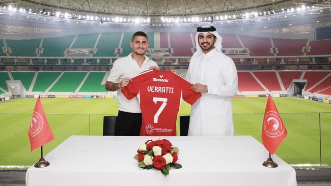 "Manajemen Klub Al Arabi menandatangani kontrak dengan bintang internasional Italia, Marco Verratti, datang dari Paris Saint-Germain, untuk jangka waktu tiga musim," bunyi pernyataan Al Arabi, Rabu (13/9/2023) malam WIB.