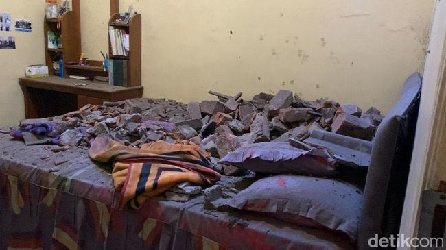 Pantauan detikJabar di lokasi, beberapa reruntuhan bata merah hancur menimpa kamar dan ruang keluarga. Reruntuhan itu belum dibersihkan karena khawatir akan ada runtuhan susulan. Dugaan sementara, bangunan tua di sebelah rumah korban rapuh dan jatuh menimpa rumah korban.