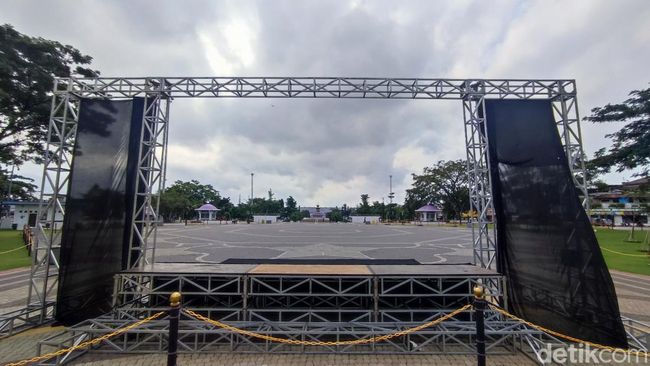 Senin (29/4/2024) pagi, terlihat kerangka baja sudah terpasang di Alun-alun Ciamis. Kerangka tersebut akan digunakan untuk memasang layar lebar serta sound sistem.