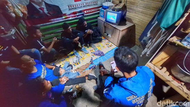 Pantauan detikJabar, Sabtu (18/5/2024), beberapa Bobotoh terlihat menonton dengan antusiasnya melalui layar kaca televisi. Mereka terlihat menonton dengan nyaman secara lesehan di area belakang sebuah warung.