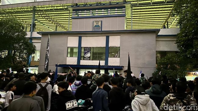 Lautan bobotoh, pendukung Persib Bandung, memenuhi area Stadion Sidolig di Jalan Ahmad Yani, Kota Bandung, Selasa (28/5/2024) sore. Kurang lebih sejak pukul 16.00 WIB, ruas Jalan Ahmad Yani dibuat macet dengan antrean bobotoh yang mencoba masuk ke area stadion.