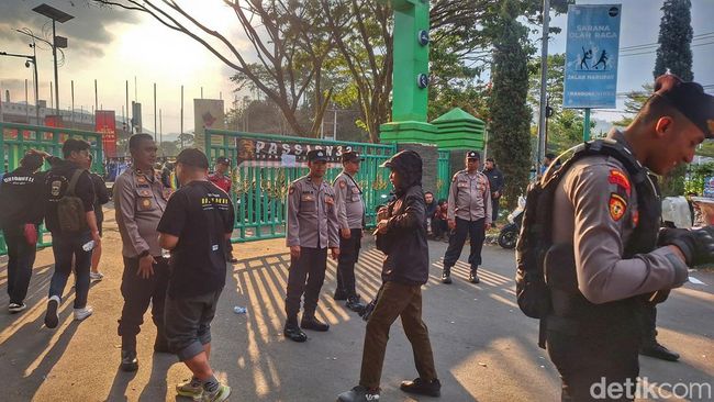 Pantauan detikJabar, sejumlah polisi melakukan pengamanan di sejumlah titik menuju stadion. Dari pintu keluar tol Kutawaringin Barat terdapat sejumlah polisi yang menjaga di titik tersebut.