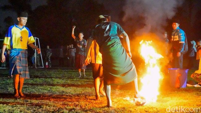 Sudah beberapa hari terakhir saat malam tiba, cahaya berwarna oranye menyala di lapangan Mako Korem 062/Tarumanagara, Garut. Ternyata ada puluhan santri yang tengah mengikuti turnamen sepak bola api.