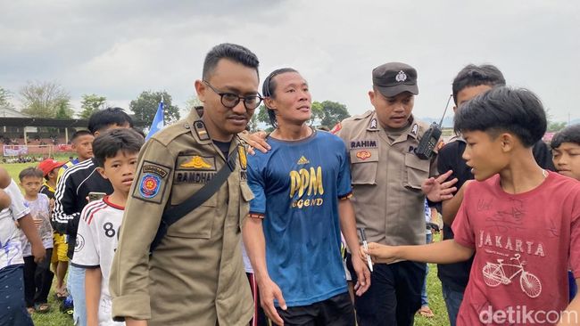 Pantauan detikJabar di Lapang Suryakencana, tampak Henhen mengenakan jersey biru Persib Legend dikerubungi para bocah oleh puluhan anak-anak yang berebut ingin berfoto dan meminta tanda tangan. Tak berselang lama, petugas Satpol PP pun datang dan mengapit Henhen ke ruang khusus.