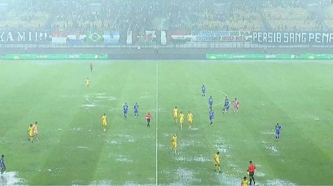 Pertandingan babak kedua antara Persib Bandung vs Persebaya Surabaya, Jumat (12/9/2025) dihentikan karena hujan deras yang membuat lapangan tergenang air. Pertandingan dihentikan di menit 71.