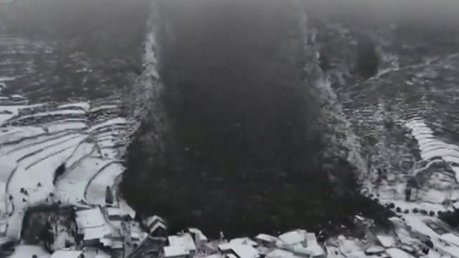 China - Bencana tanah longsor menewaskan 2 orang di Provinsi Yunnan, China, Senin (22/1). Setidaknya 47 orang masih tertimbun tanah longsor.