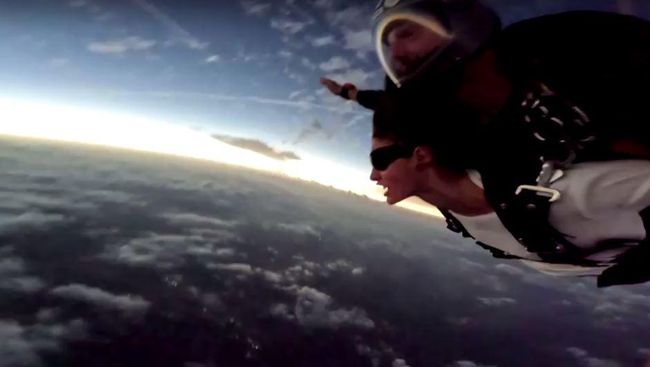 Jakarta - Beragam cara dilakukan untuk menyaksikan Gerhana Matahari Total yang terjadi pada Senin (8/4) lalu. Salah satunya dengan skydiving ala warga AS ini.