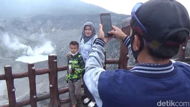 Tempat wisata di berbagai daerah masih ramai oleh pengunjung di hari terakhir libur Lebaran 2022, Minggu (8/5/2022). Di Kabupaten Subang hal itu juga terjadi, terutama di Taman Wisata Alam (TWA) Gunung Tangkubanparahu dan pemandian air panas Saiater.