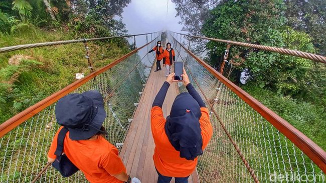Berada di kawasan Gunung Patuha, jembatan tersebut terbentang dengan panjang 370 meter. Tertarik menjajal trek jembatan sepanjang itu?