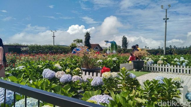 "Itu di pinggir juga ada kebun strawberry. Iya, pengunjung bisa makan langsung dari pohonnya. Tapi ada biaya lagi kalau mau strawberry, Rp 100 ribu per kilo," ucap dia.