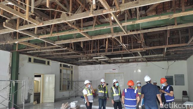 "Anggaran konstruksinya Rp 4,1 miliar meliputi perbaikan utama penggantian rangka atap untuk sisi barat, ruang VIP, perbaikan dinding karena udah banyak yang retak, plafon, mushala, toilet, pengecatan, tata udara dan tata lampu," ucap Ujang.