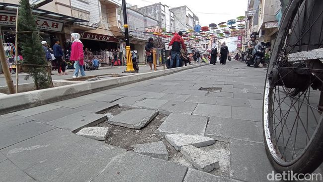 Pengunjung kawasan pedestrian Jalan Cihideung, Kota Tasikmalaya menyesalkan banyaknya bagian jalan yang rusak. Kerusakan itu terdapat di bagian jalur sepeda motor yang berlantai batu andesit. Beberapa petak hamparan batu andesit itu pecah, sehingga mengganggu kenyamanan pengunjung.
