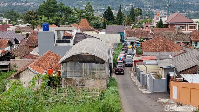Dilihat dari bawah, tanjakan dengan panjang sekitar 200 meter itu agak sumpek, dengan deretan rumah dan greenhouse di sisi kiri dan kanannya.