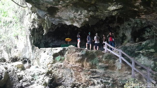 Pengunjung bisa berfoto di antara lubang gua bagian depan dengan spot mulut gua yang berhadapan ke arah pantai.