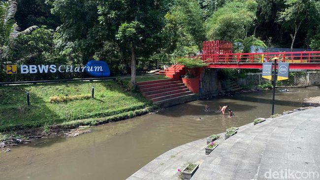 Siang itu, Kamis (6/3/2023) terlihat anak-anak sedang bermain air di Teras Cikapundung dengan asyiknya. Meskipun mentari sedang terik tidak menurutkan energi mereka.