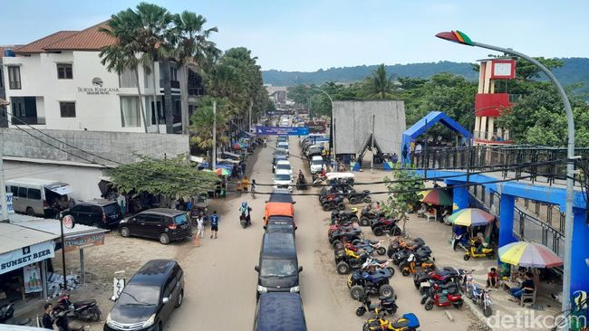 Pantauan detikJabar pada Rabu (26/4) pukul 14.00 WIB siang, kunjungan masuk objek wisata pantai Pangandaran masih tinggi. Sementara arus keluar wisatawan dari pantai Pangandaran menjadi penyebab kemacetan.