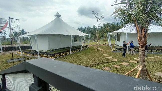 "Glamping ini memiliki konsep tenda dengan tembok yang dibuat menyerupai kain tenda. Jadi, sensasi yang ditawarkan adalah camping rasa hotel bintang lima," kata pengelola Sabda Alam, Beni Hidayat.