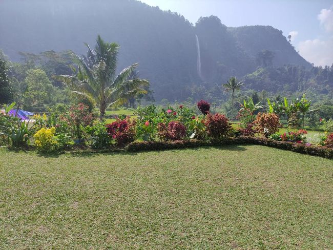 Pemandangan indah bak surga dunia pun kembali terlihat dari rumah Abah Jajang. Pesona indah Curug Citambur dengan halaman hijau dan hamparan persawahan memanjakan mata.