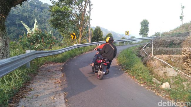 Pantauan detikJabar di lokasi, lebar jalan tersebut kurang lebih hanya sekitar 1,5 meter. Wisatawan yang menggunakan kendaraan roda empat melalui jalur ini, terpaksa harus rela antre jika ada mobil lain dari lawan arah.