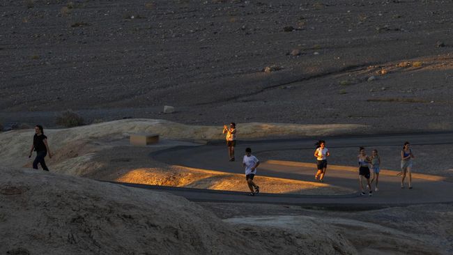 California - Wisatawan ramai-ramai datang ke Death Valley, California, AS untuk merasakan suhu terpanas di Bumi. Suhu di sana mencapai 54 derajat Celcius Celcius.