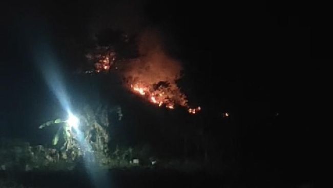 Sebagian lahan Gunung Sunda dan lahan di Gunung Guruh, Kabupaten Sukabumi kebakaran, Senin (18/9/2023) malam. Penyebab kebakaran masih diselidiki petugas terkait.