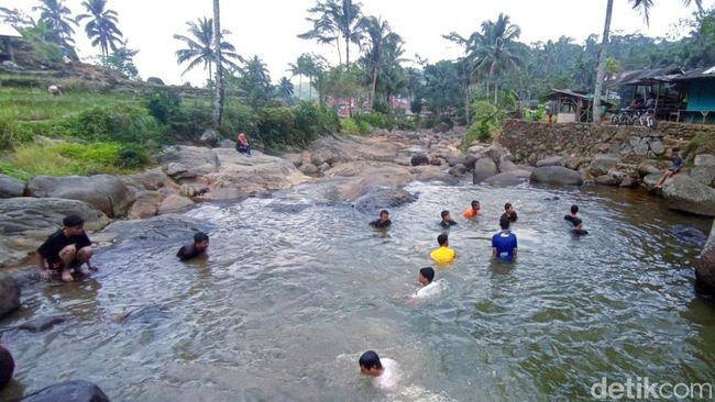 Pantauan detikJabar, Jumat (29/9/2023), aliran sungai di Obyek Wisata Cadas Ngampar, Kecamatan Sadananya terpantau kecil. Meski demikian, masih banyak pengunjung yang berdatangan.