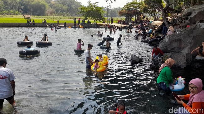 Seperti terpantau detikJabar pada Minggu (1/10/2023) siang, sejumlah wisatawan yang rata-rata datang bersama rombongan keluarganya itu tampak begitu asik menikmati kejernihan dari kolam mata air Cikandung. Hamparan sawah, bebatuan serta pepohonan besar yang melindungi mata air, menjadikan suhu udara di sekelilingnya menjadi sejuk.