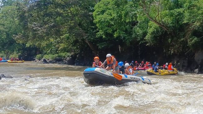 "Jadi karakteristiknya paket komplit, jeram kemudian tenang, jeram lagi flat lagi, Misalnya di jalur yang kita lalui saat ini saja, setidaknya ada 14 jeram. Tinggal dipilih saja, jadi aman bagi wisatawan dan menantang bagi pegiat," kata Obech.