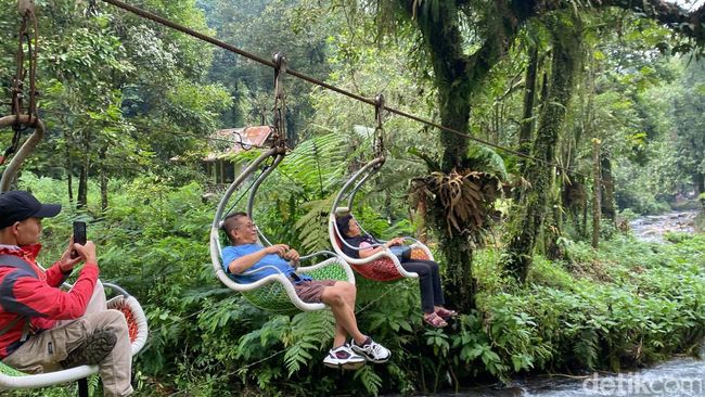 Selain naik wahana Keranjang Sultan, Iyan dan keluarganya juga melewati jembatan gantung sepanjang 414 meter. Jembatan ini diklaim sebagai jembatan terpanjang se-Asia Tenggara. Kemudian, dia juga mengunjungi Curug Sawer.